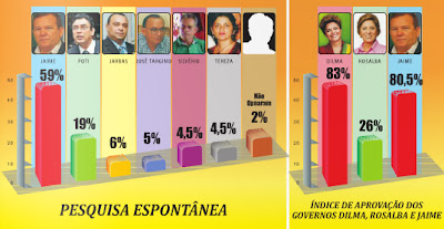 O desemprenho administrativo do prefeiti Jaime Calado tem contribuído de forma decisiva para os seus altos índices de aprovação: 80.5% dos entrevistados aprovam a gestão do prefeito, 16% disseram não e apenas 3,5% não opinaram.